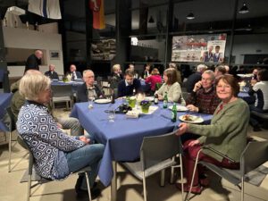 Zurück im Clubhaus konnte das jährliche Stiftungsfest beginnen. Einige Mitglieder hatten bereits am Tag zuvor die Tische für die 33 Teilnehmer:innen aufgebaut und eingedeckt. Zu essen gab es Grünkohl satt (Bregenwurst, frisch und geräuchert, Kassler und Bauchfleisch samt Kartoffeln) sowie Lachslasagne.